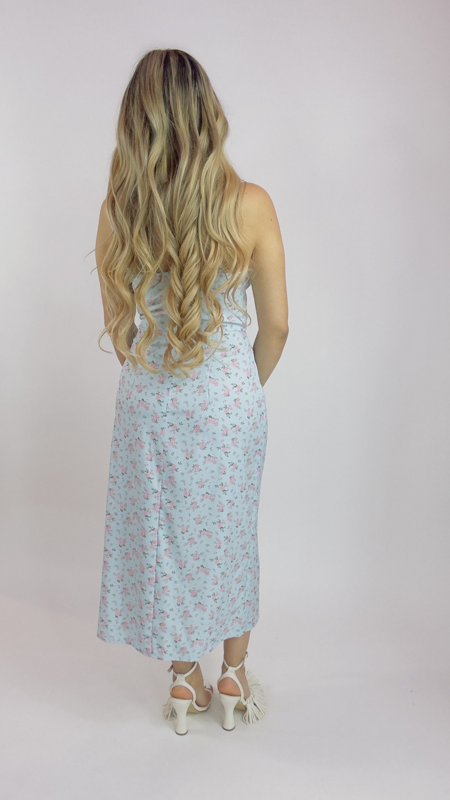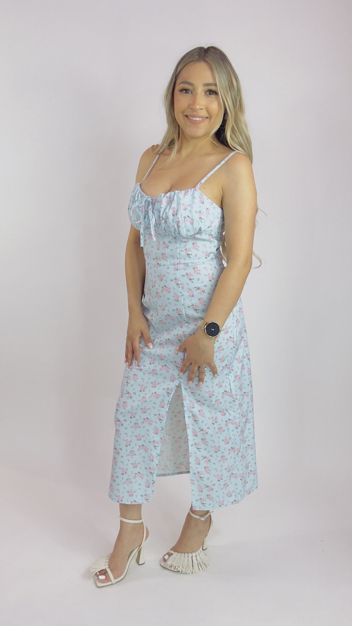 Vestido midi de tirantes con estampado floral / Azul